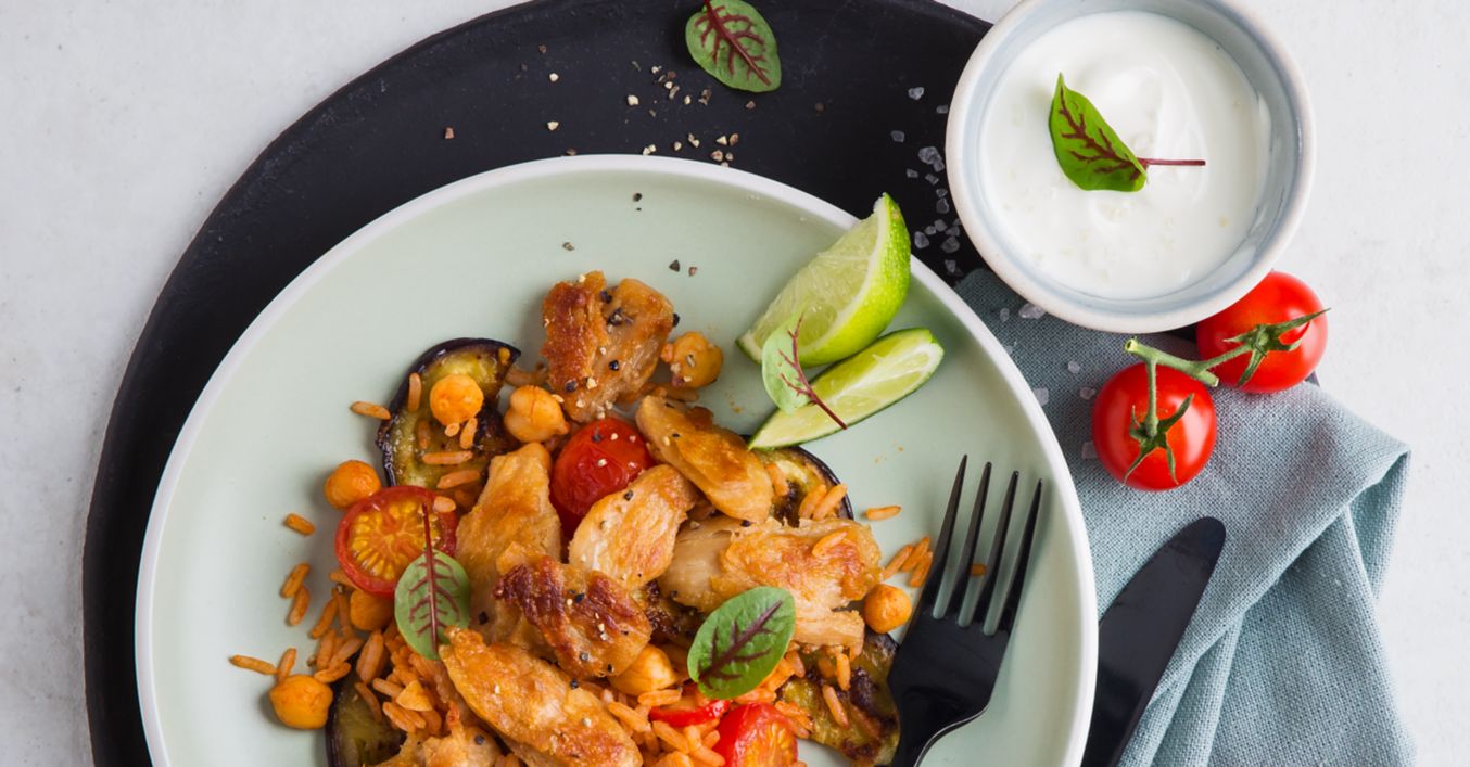 Pikantní rýžová pánev s rajčaty a cizrnou