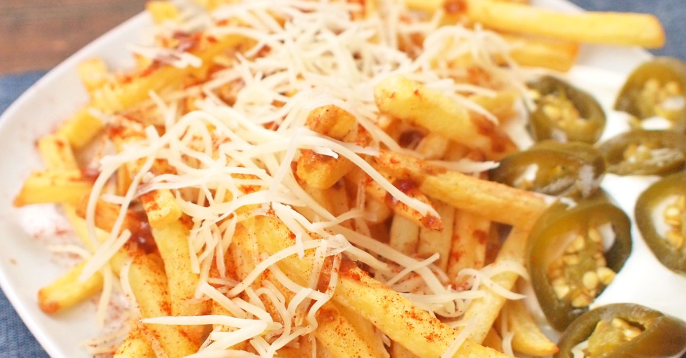 Horké hranolky rozdělíme do košíčků nebo misek vystlaných pečicím papírem. Zakápneme BBQ omáčkou a zasypeme sýrem. Podáváme s ochucenou majonézou, kterou posypeme plátky jalapeňo papriček.