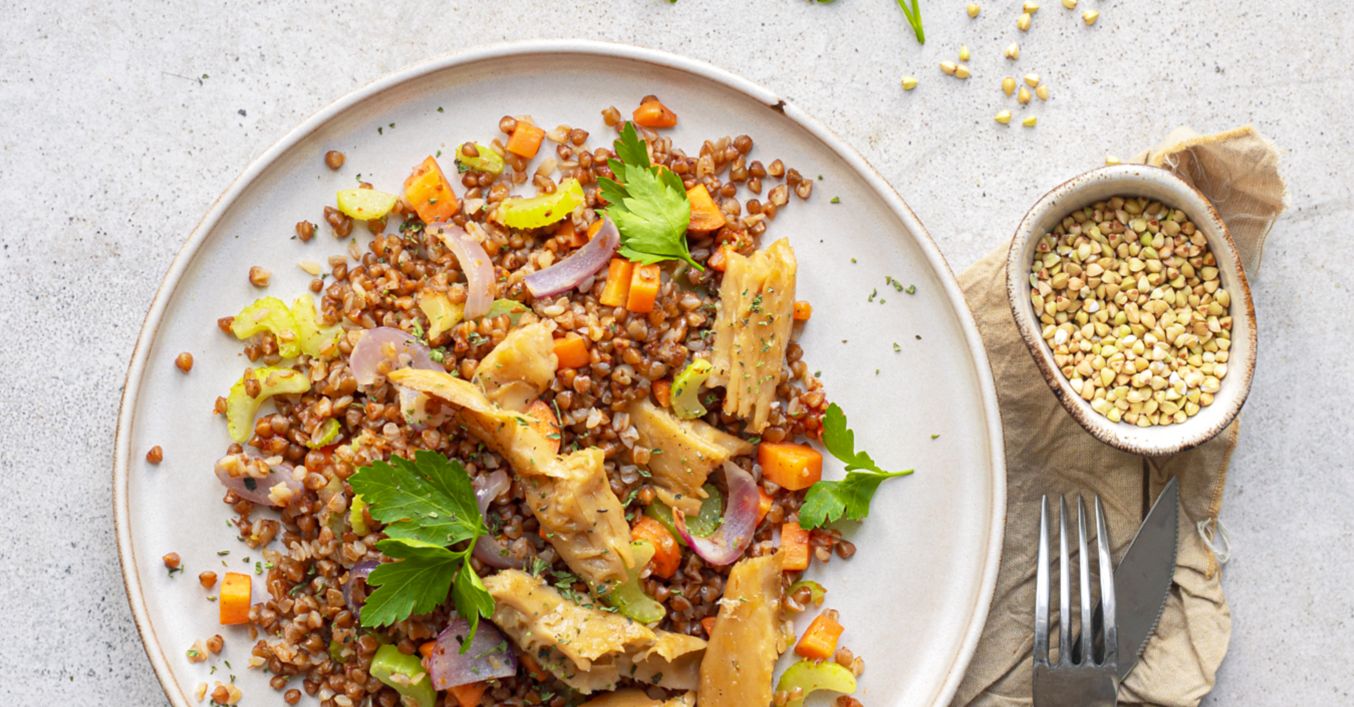 Zeleninu promíchejte s uvařenou pohankou a majoránkou. Podle chuti osolte a opepřete. Podávejte s kuřecím masem a petrželkou.