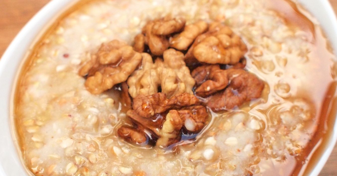 Dáme spolu s mlékem, cukrem a skořicí do rendlíku a uvaříme za stálého míchání do změknutí asi 20 až 25 minut. Vmícháme lžíci másla a podáváme spolu s vlašskými ořechy.