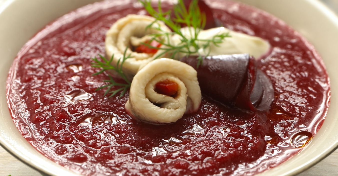 Podáváme se zavináči, zakysanou smetanou a koprem.