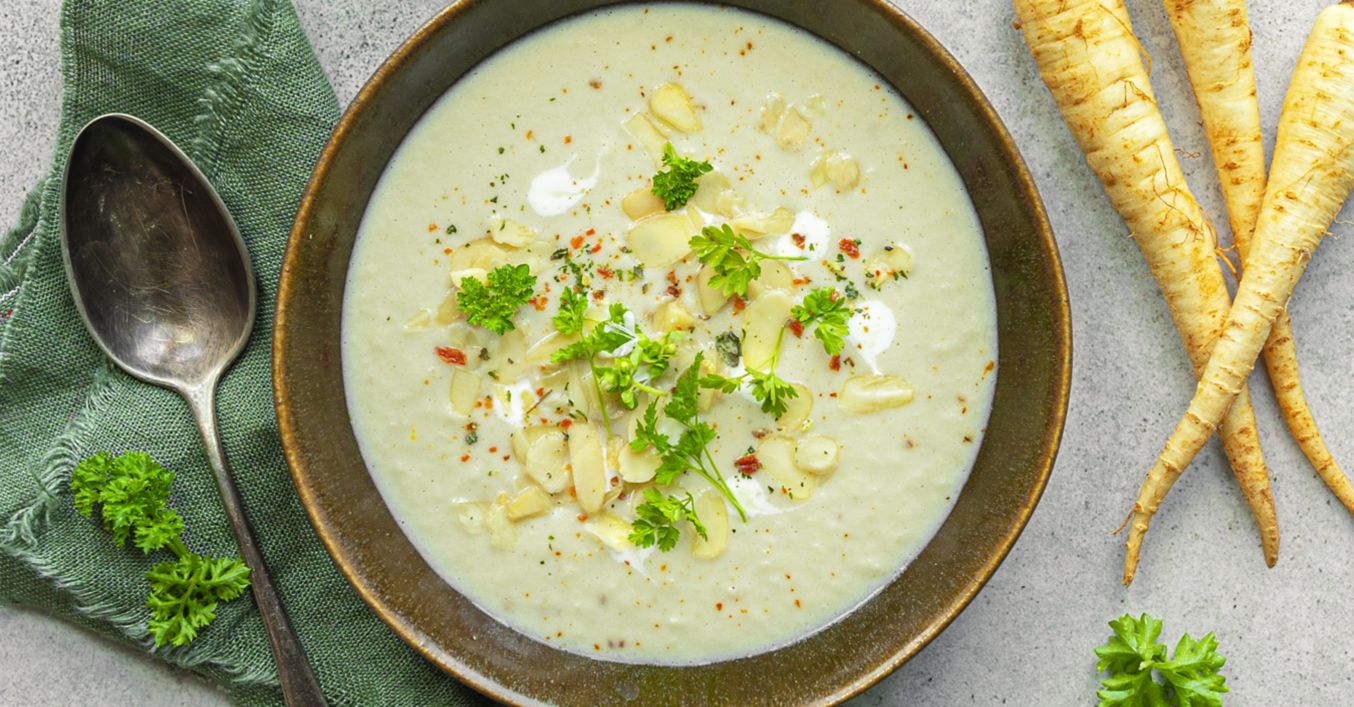 Polévka z kořenové petržele se smetanou a mandlemi