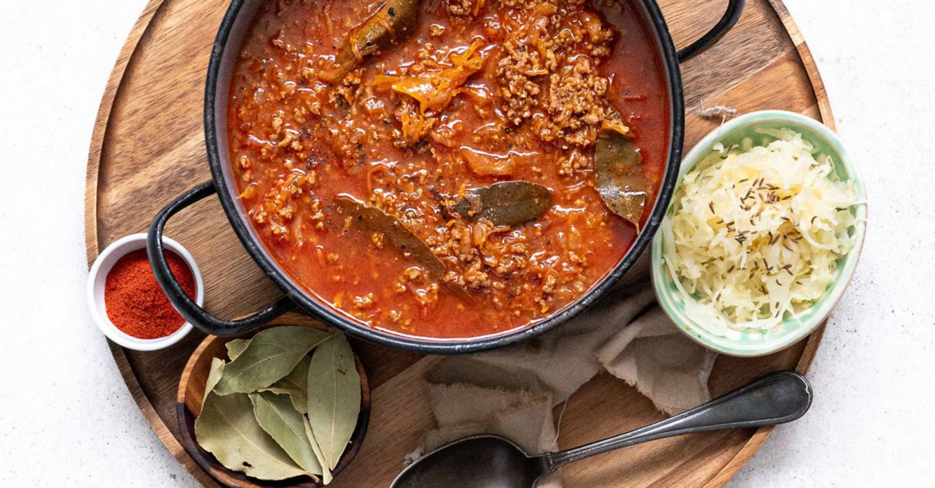 Polévka s mletým hovězím masem a kysaným zelím