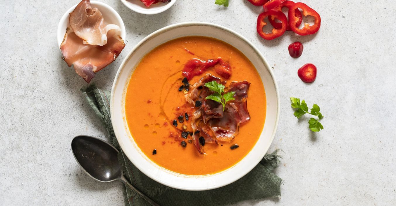 Polévka z pečených paprik se sušenou šunkou