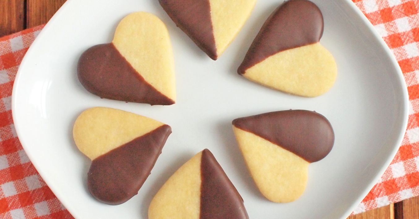 Polevu dáme do vodní lázně (teplota okolo 60 °C) a necháme zcela rozehřát. Polevu nalijeme do malé misky. Srdíčka namáčíme do polevy vždy jen z jedné poloviny a necháme ztvrdnout na mřížce nebo na silikonové podložce.