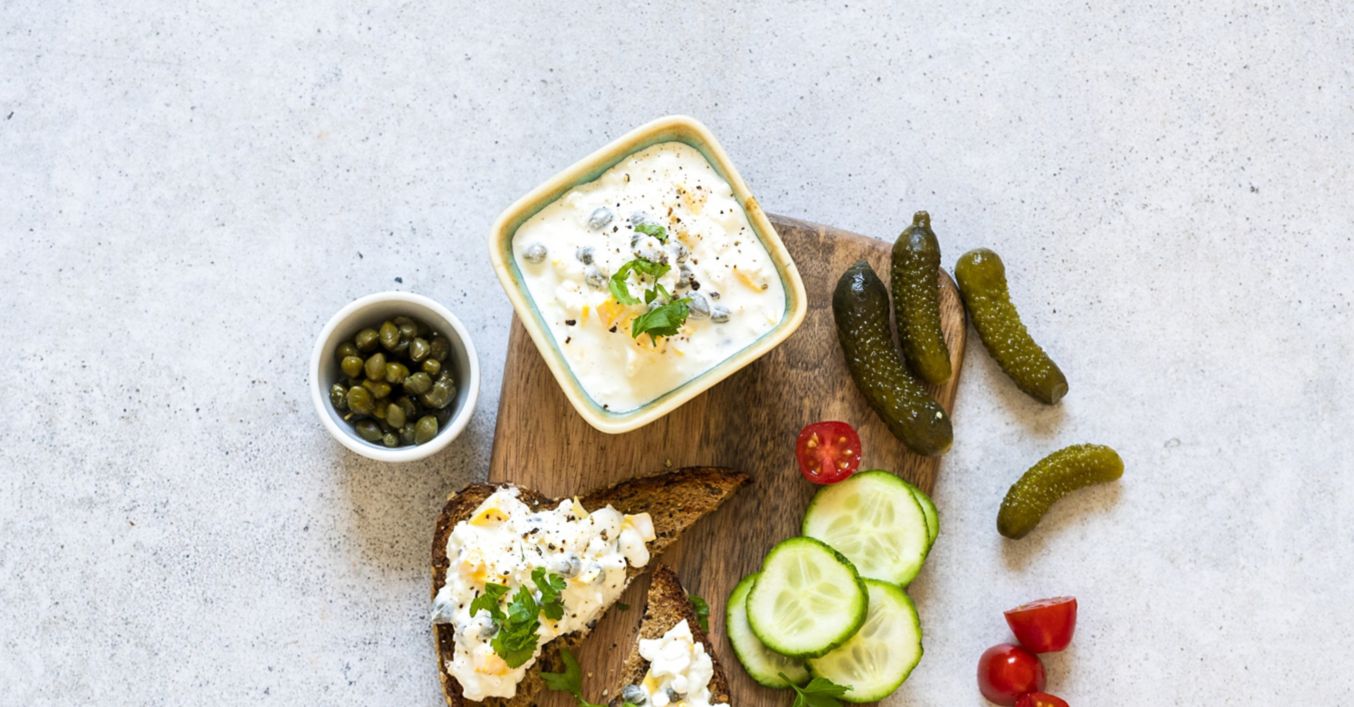 Cottage sýr promíchejte s pomazánkovým máslem, kapary, vejcem, okurkami, majonézou, hořčicí a citrónovou šťávou. Podle chuti osolte a opepřete.