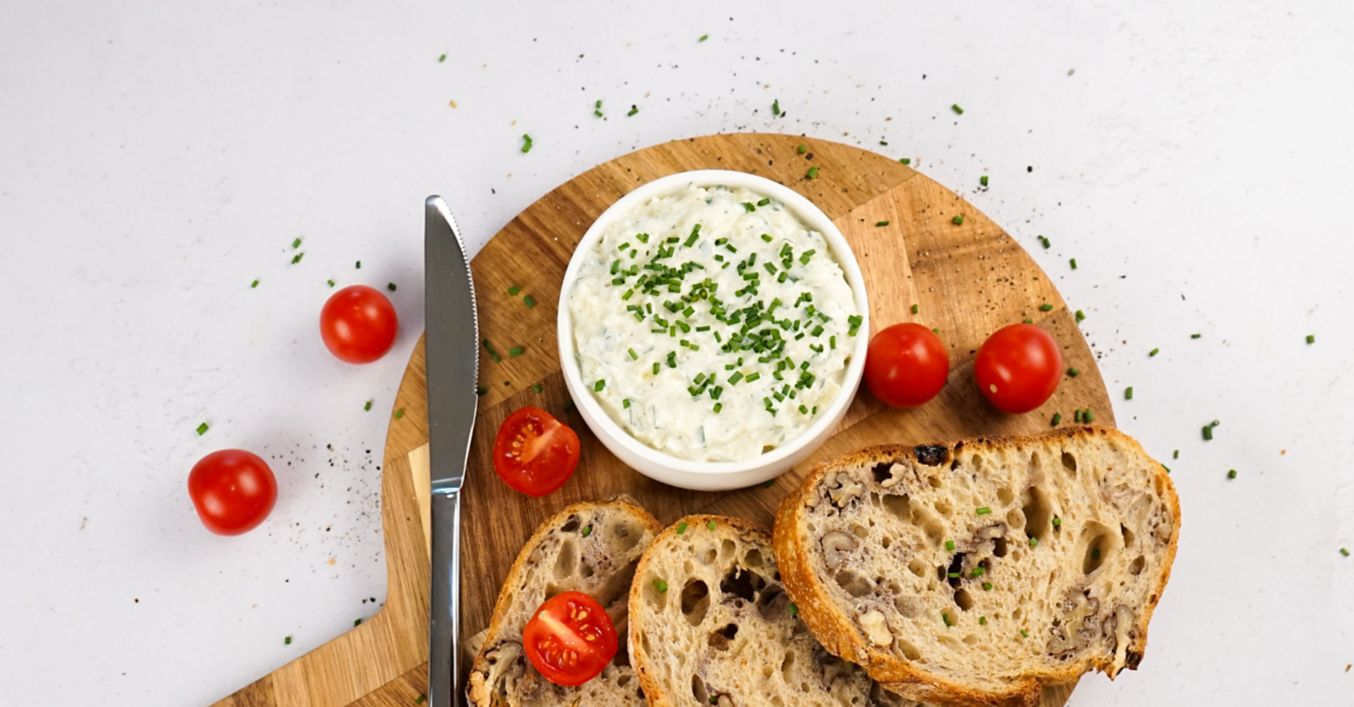 Pomazánku podávejte na čerstvém chlebu a posypte pažitkou.