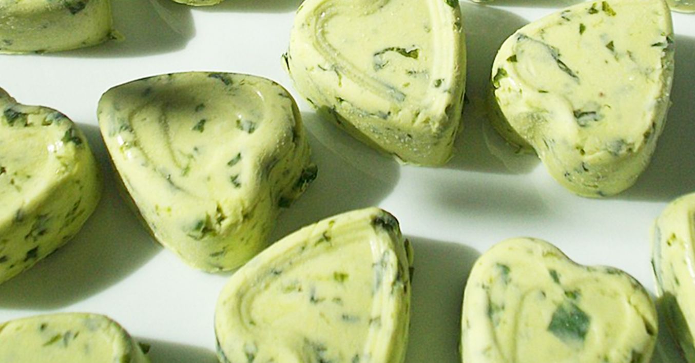 Měkké máslo společně s na drobno nasekaným čerstvým medvědím česnekem dáme do mixéru.