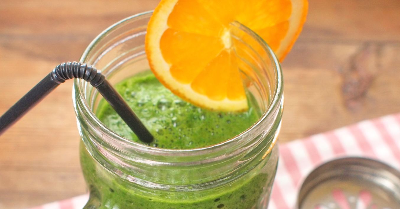 Pomerančovou šťávu, špenát a led rozmixujeme na hladké smoothie a podáváme.