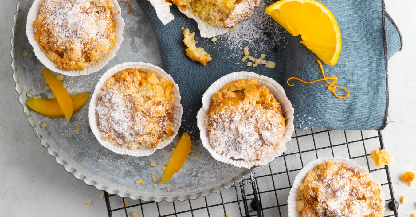 Suroviny na drobenku smícháme a prohněteme. Každý muffin poté drobenkou zasypeme a dáme péct do trouby rozehřáté na 180 °C na 30 až 35 minut dozlatova. Vychladlé muffiny zdobíme moučkovým cukrem.