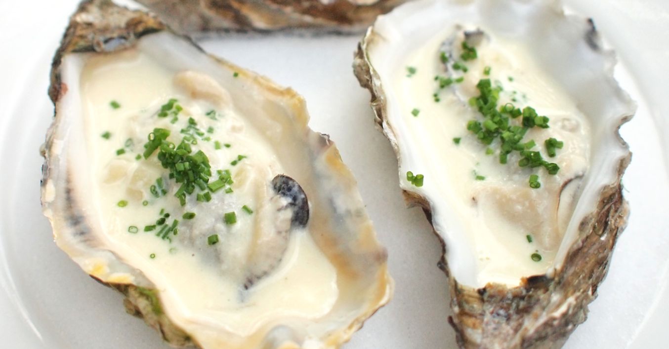 Zbytek omáčky přecedíme a vmícháme do ní zbylé studené máslo. Rozmícháme a zalijeme ústřice v lasturách. Zdobíme bylinkami a ihned podáváme k bílému pečivu a sklence suchého bílého vína.