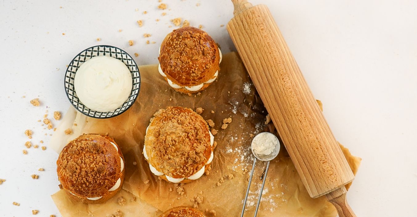 Po upečení nechte bochánky vychladnout. Vychladnuté bochánky rozkrojte podélně na poloviny a naplňte krémem.