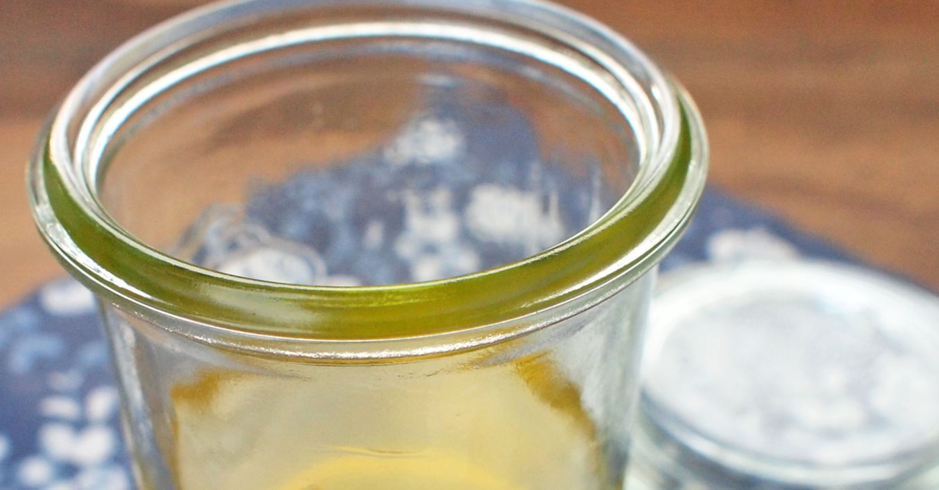 Přepuštěné máslo přecedíme přes jemné plátýnko v cedníku do čisté nádoby s víčkem. Část másla u dna, která je zakalená, si necháme pro jiné účely.