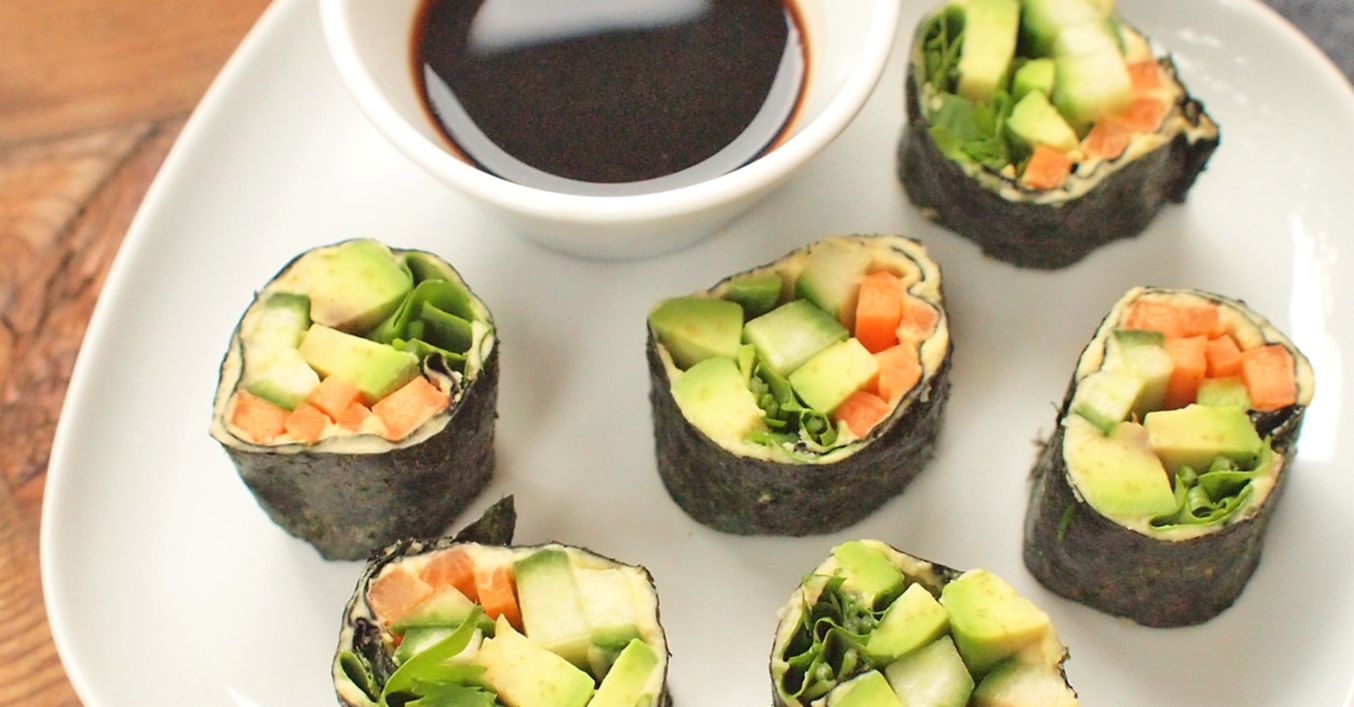 Řasu nori si rozložíme na stůl a potřeme trochou kešu másla. Do jednoho řádku rozložíme mrkev, okurku, avokádo a koriandr. Stočíme, utěsníme a zabalíme do ruličky. Nakrájíme na stejně vysoké válečky a podáváme.
