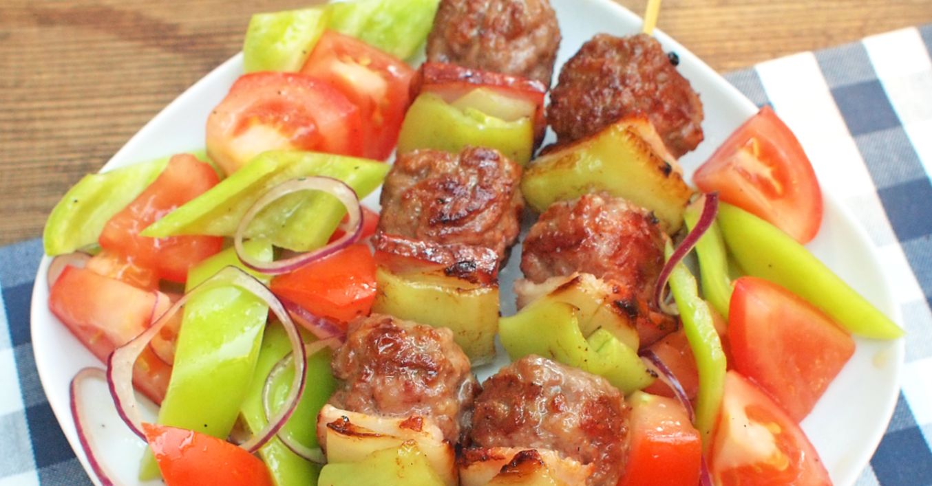 Na špízy pak postupně napichujeme masové kuličky, cibuli, slaninu a papriku. Špízy pak grilujeme na rozehřátém grilu ze všech stran. Dohromady asi 10 až 15 minut, dokud nejsou kuličky i zelenina propečené.