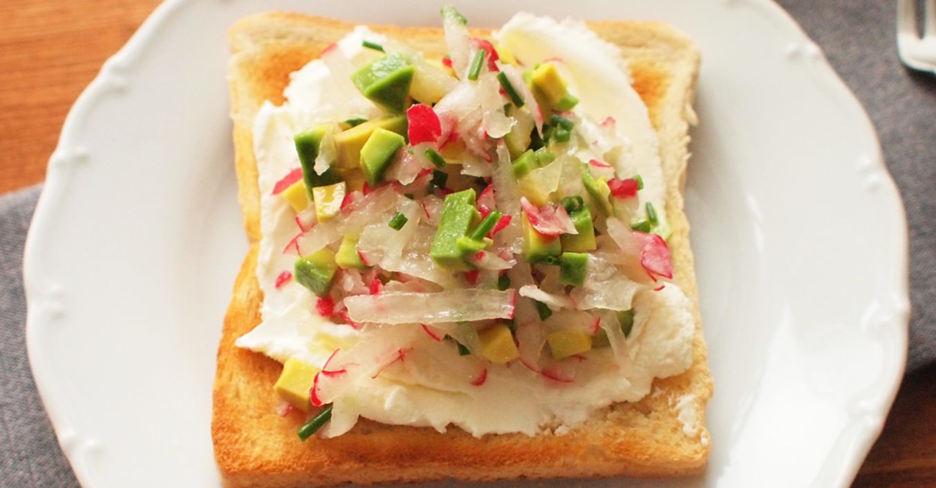 Avokádo oloupeme, zbavíme pecky a nakrájíme na kostky. Ředkvičky očistíme a nastrouháme do mísy. Přidáme avokádo a rozmícháme. Vmícháme pažitku a dochutíme solí, pepřem, tabascem a limetkou.Toasty opečeme v toastovači dozlatova. Každý toast potřeme krémovým sýrem, přidáme avokádo s ředkvičkami a servírujeme.
