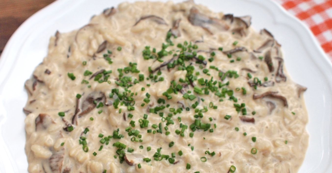 Chvíli předtím ještě k rýži přidáme hříbky a dobře promícháme. Jakmile je rýže tak akorát, odstavíme, vmícháme zbylé máslo a nastrouhaný parmazán. Ihned podáváme.