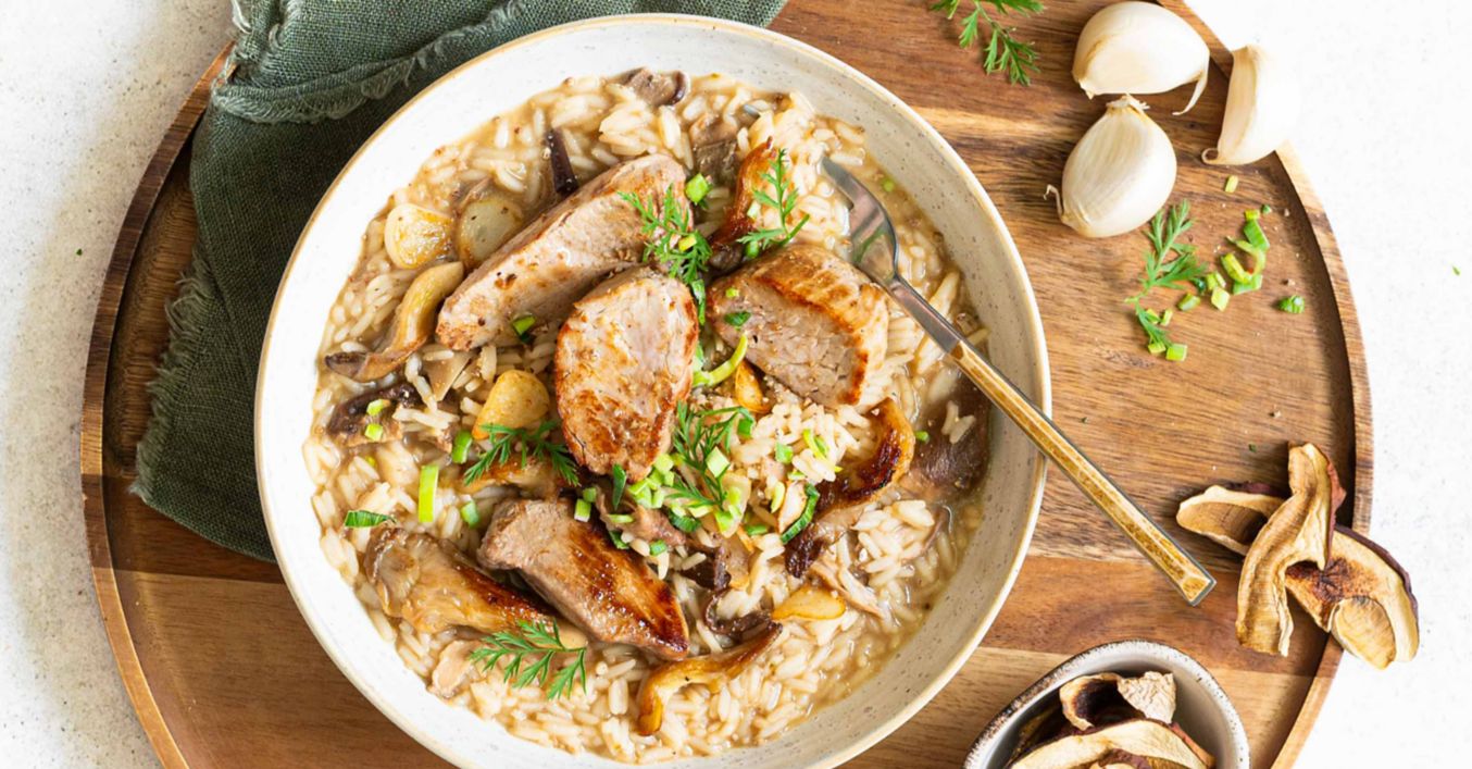Rizoto s hlívou ústřičnou a vepřovou panenkou