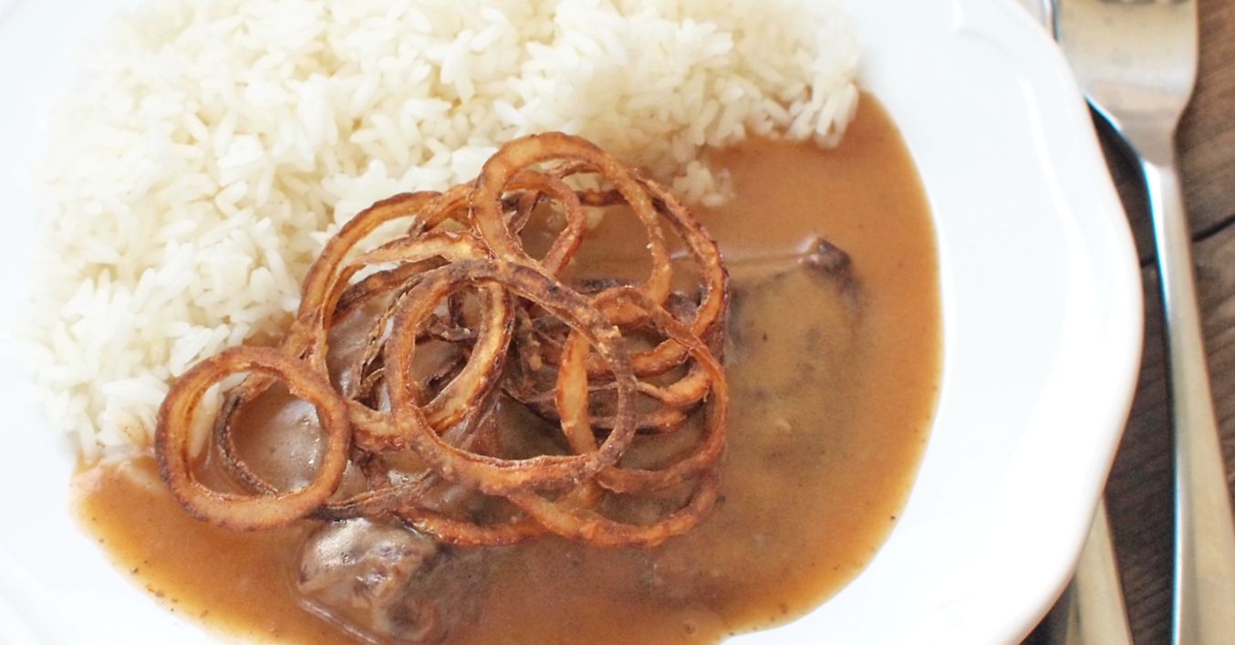 Na pánvi rozehřejeme 2 lžíce oleje a opečeme na něm roštěnky z obou stran dohněda. Dáme je stranou a na pánev dáme lžíci másla a kostičky cibule. Opečeme dozlatova, vrátíme na pánev maso a zalijeme vývarem. Poté pomalu dusíme asi 1,5 hodiny do změknutí. Podle potřeby podléváme vývarem navíc.