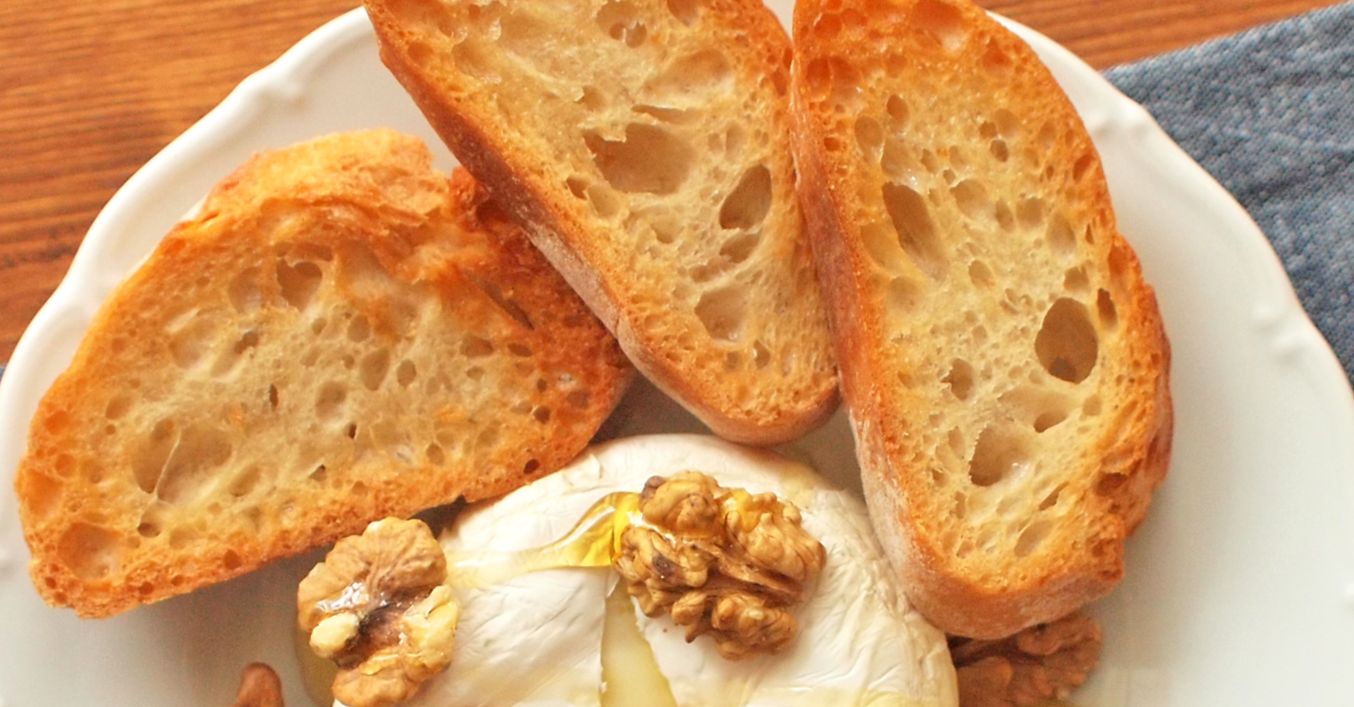 Mezitím očistíme vlašské ořechy a nasucho je opražíme na nepřilnavé pánvi (stačí 2 minuty). Rozpečený hermelín servírujeme s praženými vlašskými ořechy, medem a bagetou.