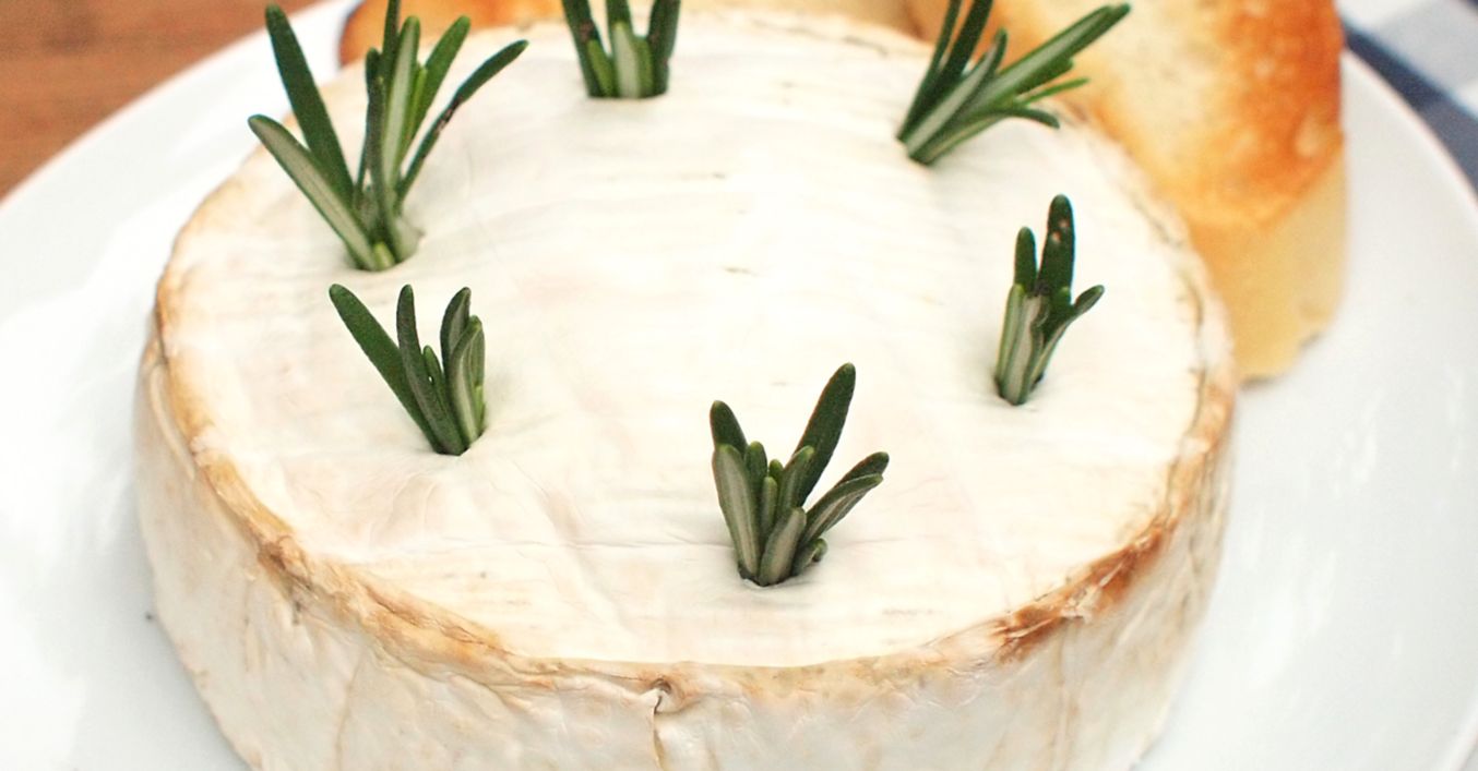 Sýr rozbalíme a umístíme do zapékací misky, kterou na dně potřeme trochou másla. Do sýra uděláme několik otvorů, do kterých zasuneme snítky rozmarýnu.
