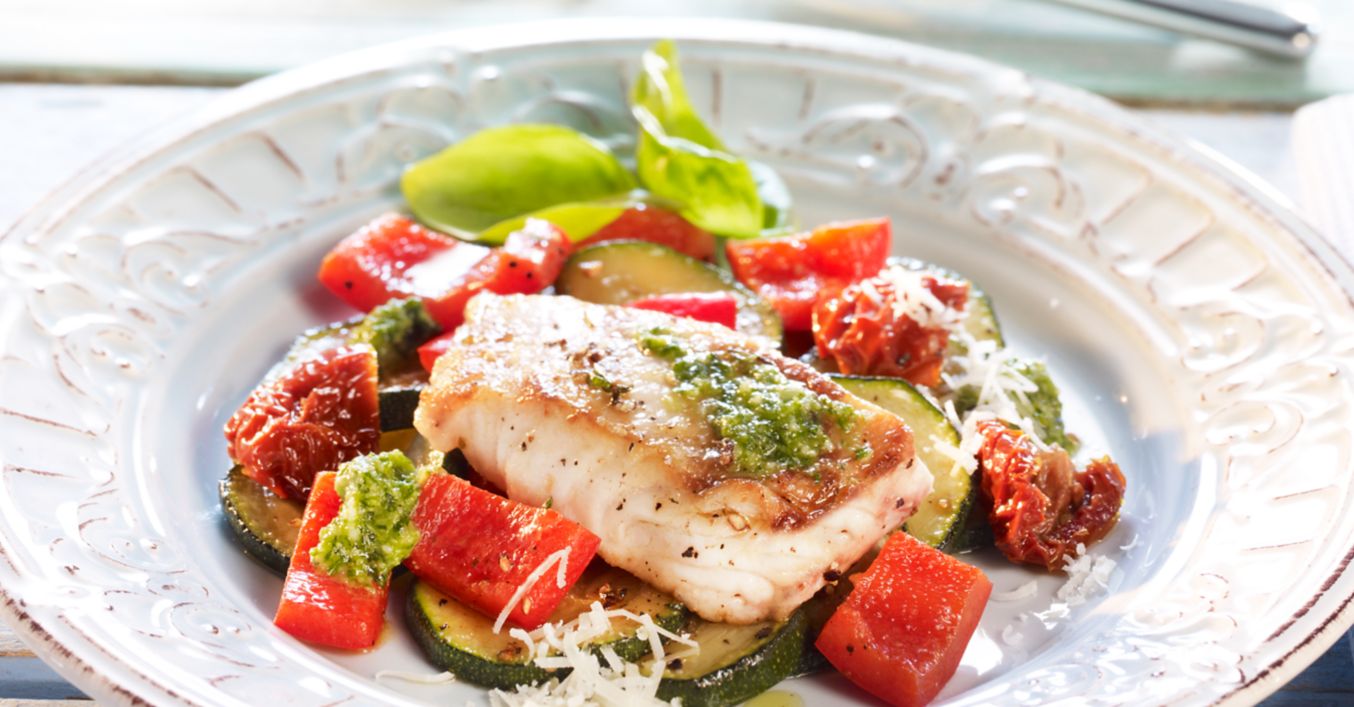Rybí filé s letním pestem a provensálskou zeleninou