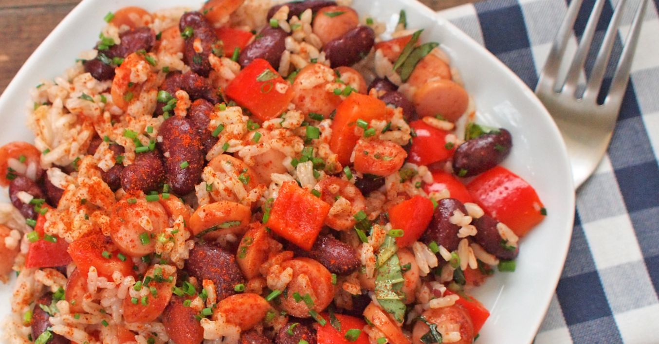 Rychlá rýže s fazolemi a párkem