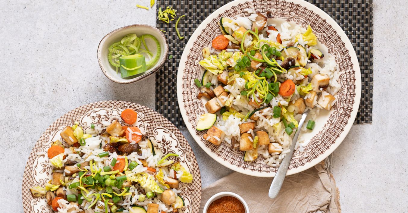 Vmíchejte rýži a jarní cibulku. Restujte další 3 minuty.