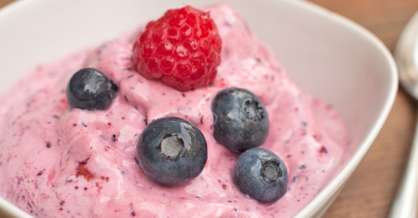 Podávejte ihned s čerstvým ovocem na ozdobu. Pokud ovoce při mixování povolí příliš, dejte ho před podáváním ztuhnout na 30 až 60 minut do mrazáku.
