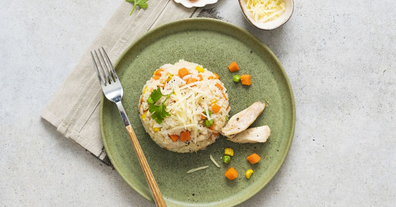 Rychlé rizoto s kuřecím masem a mraženou zeleninou