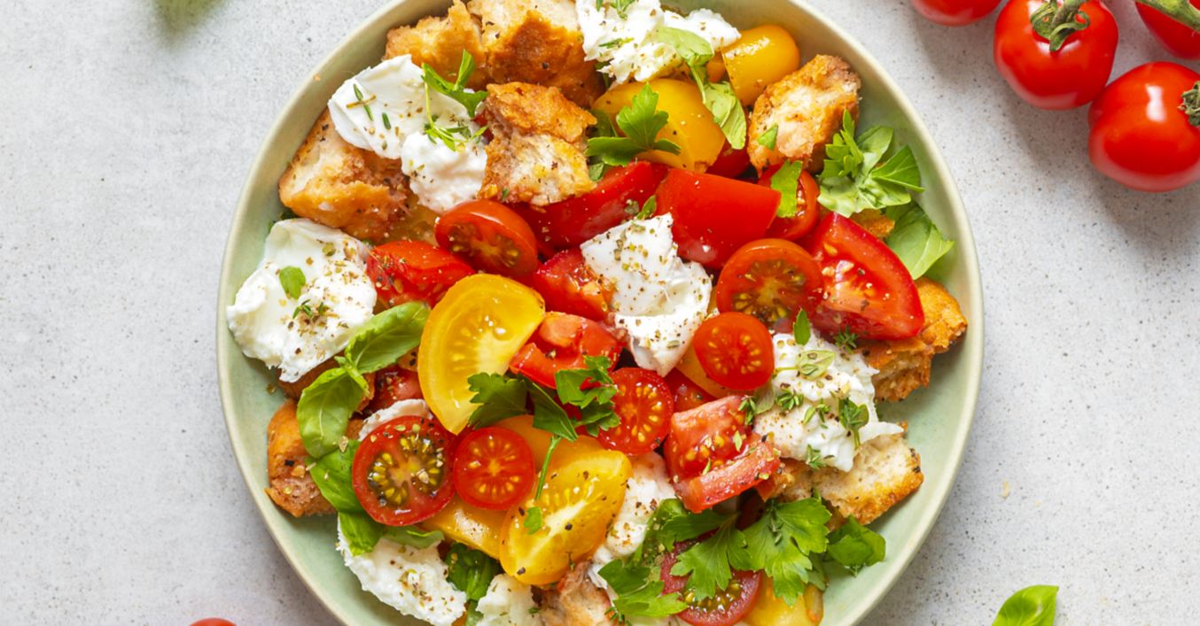 Salát panzanella s mozzarellou
