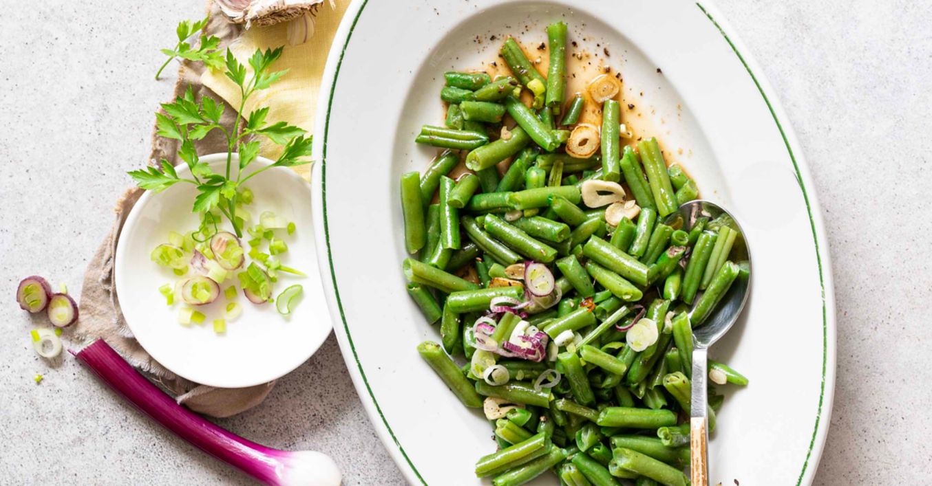 Orestované fazolky promíchejte s marinádou. Opepřete a hned podávejte.