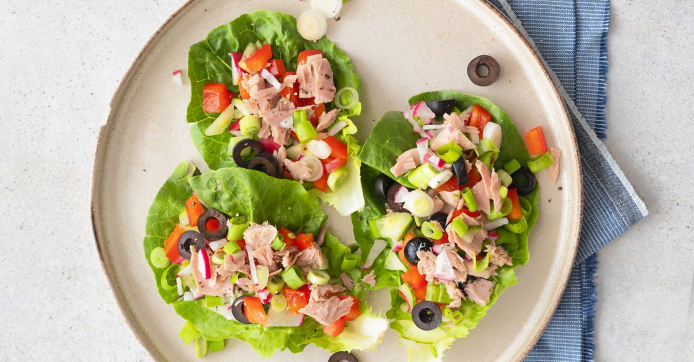 Listy salátu od sebe oddělte a naplňte připravenou směsí.