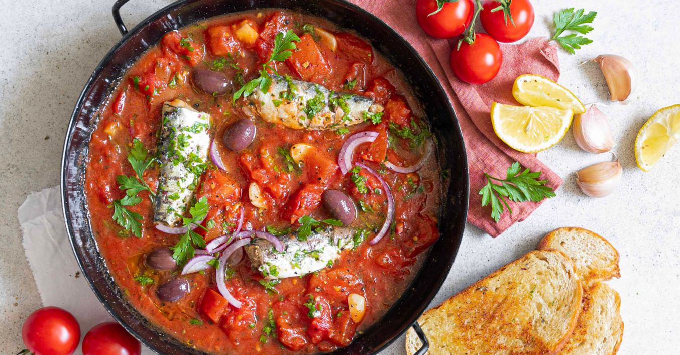 Sardinky v rajčatové omáčce s olivami