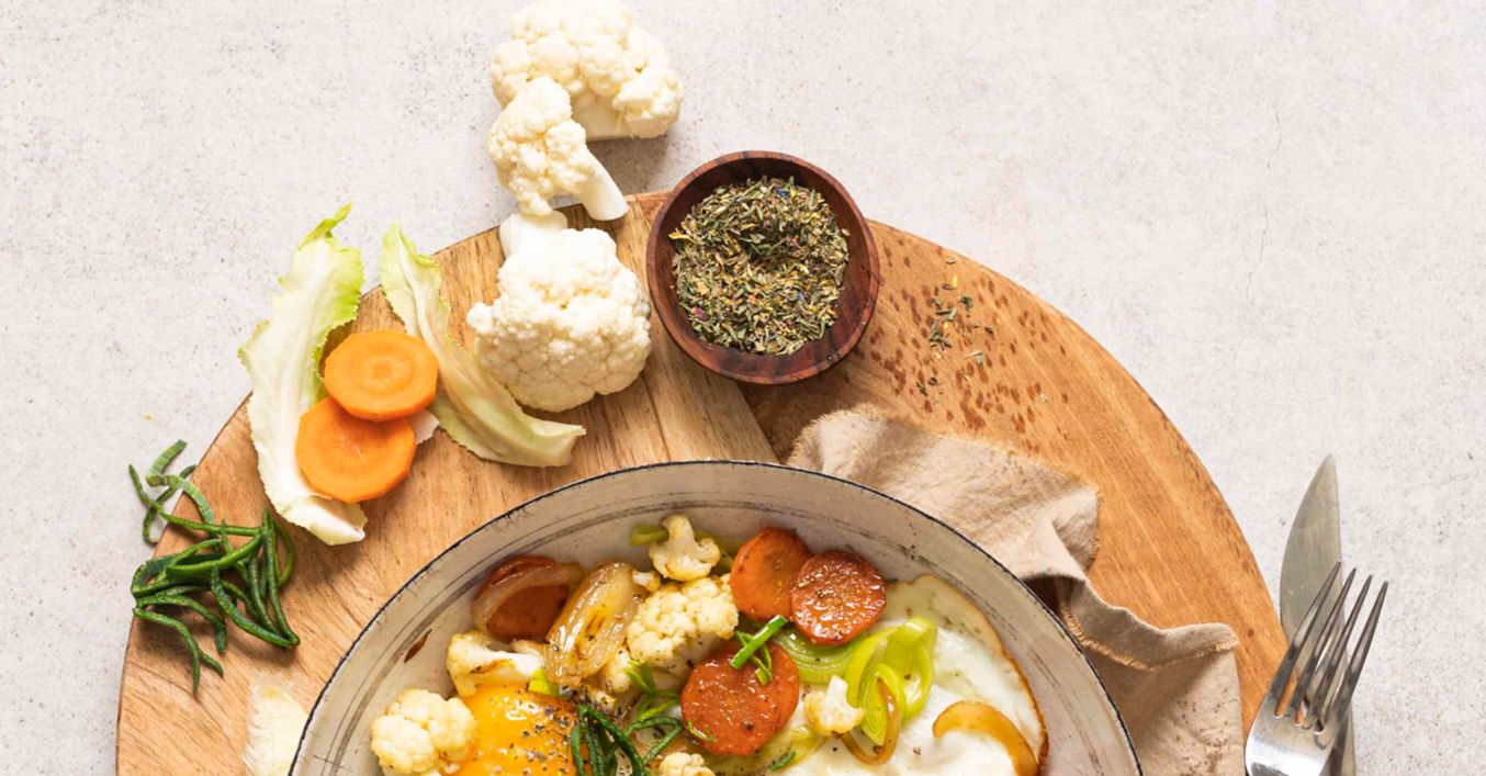 Cibuli nakrájejte na měsíčky, mrkev a pórek na kolečka. Květák rozeberte na menší růžičky.