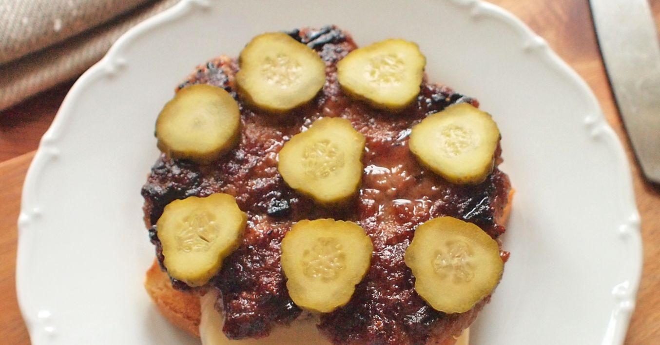 Připravené maso grilujeme na rozpáleném grilu z obou stran (dohromady asi 8 až 10 minut). Na toast dáme plátek sýra, přidáme maso, ozdobíme plátky okurky a ihned podáváme.