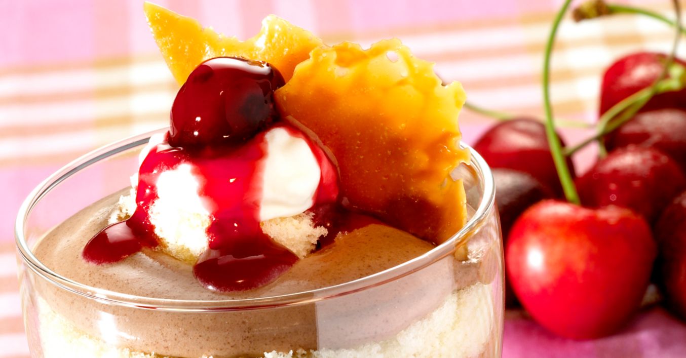 Upečený korpus necháme vychladnout, podélně jej rozpůlíme a vykrojíme z něj sklenicí celkem 18 koleček. Ty pak na střídačku s whisky šlehačkou naplníme do 6 sklenic (viz fotografie).