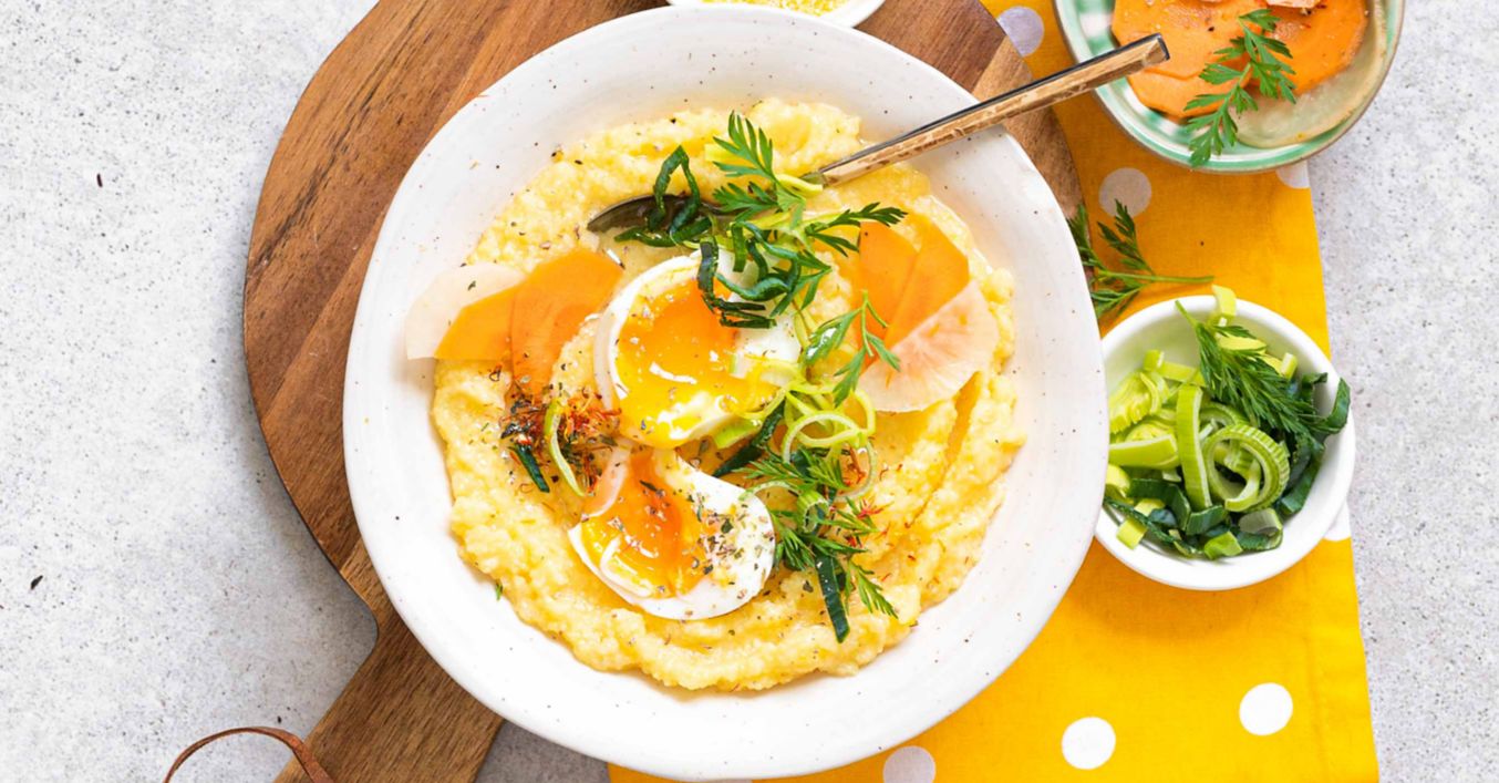 Slaná polentová kaše s vejcem a nakládanou zeleninou