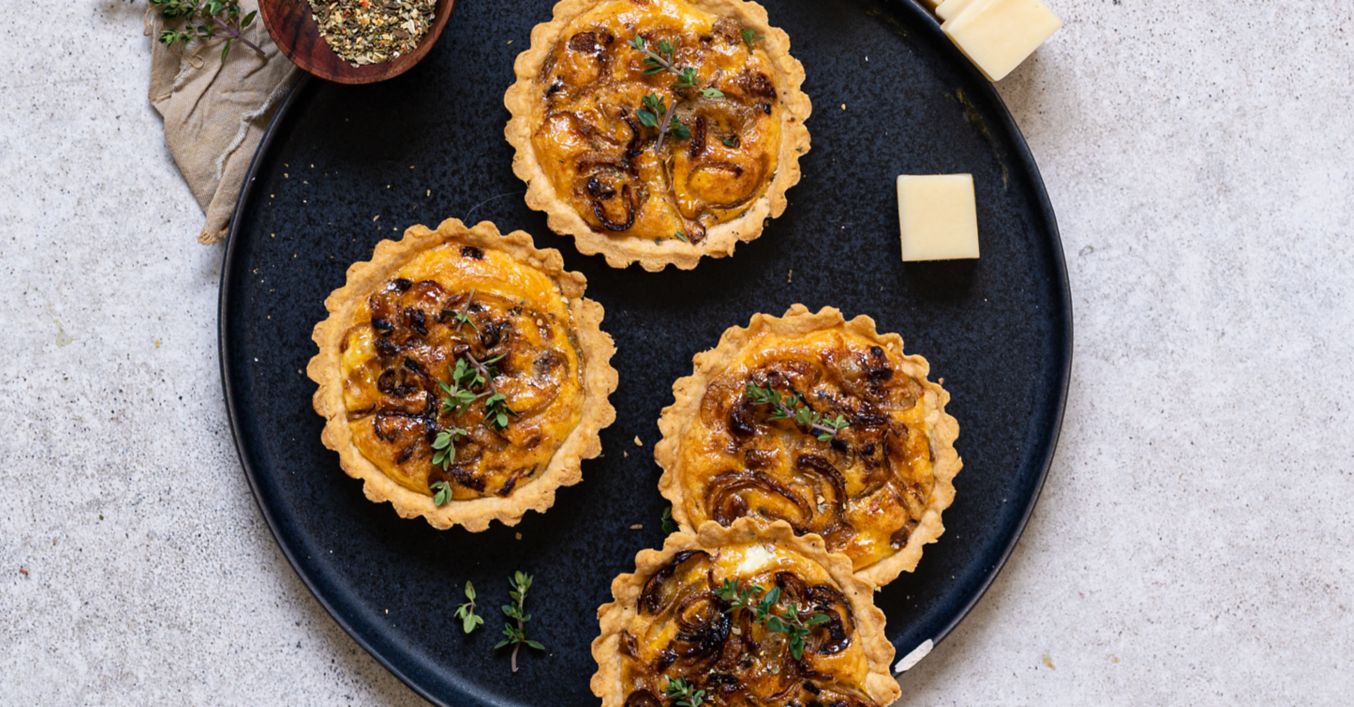 Sýr nastrouhejte najemno. Promíchejte s vejci, orestovanou cibulí a tymiánem. Osolte a opepřete.