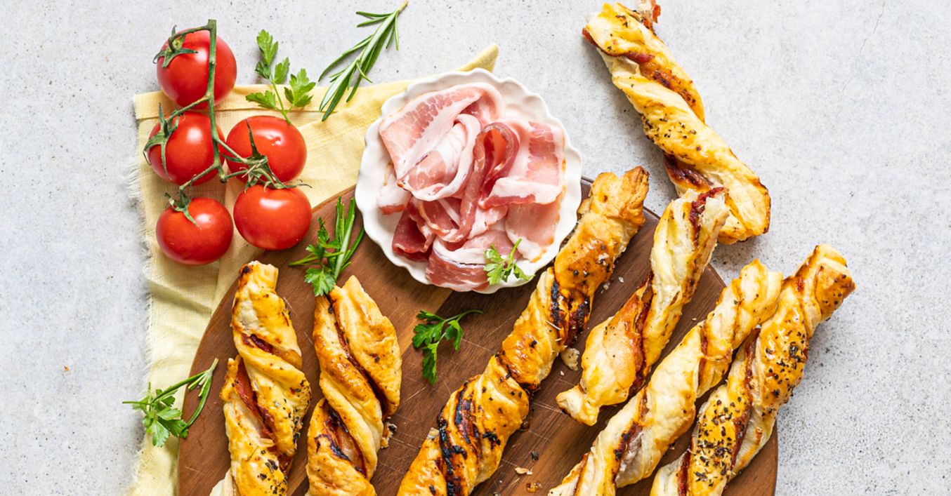Slané tyčinky z listového těsta se slaninou