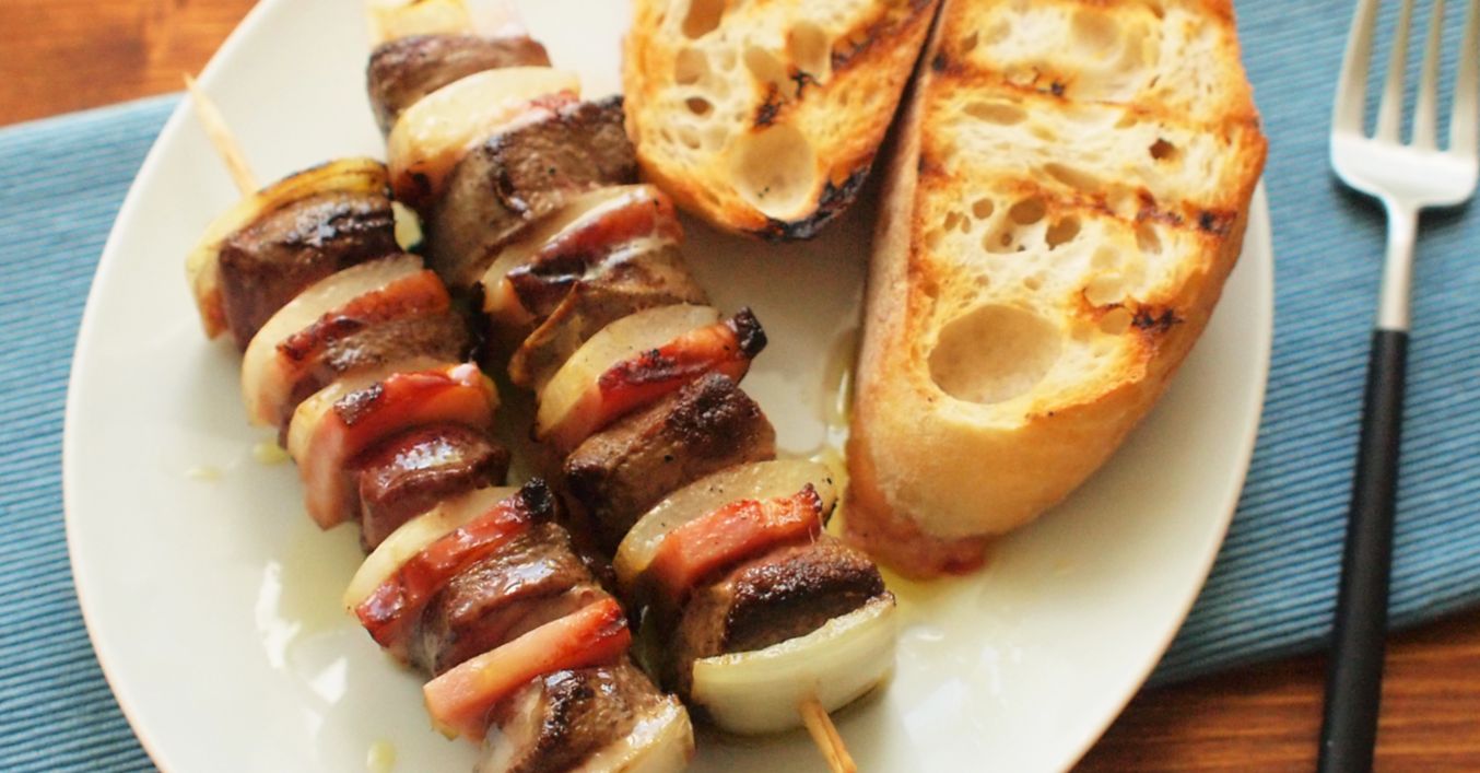 Slaninové špízy s drůbežími játry