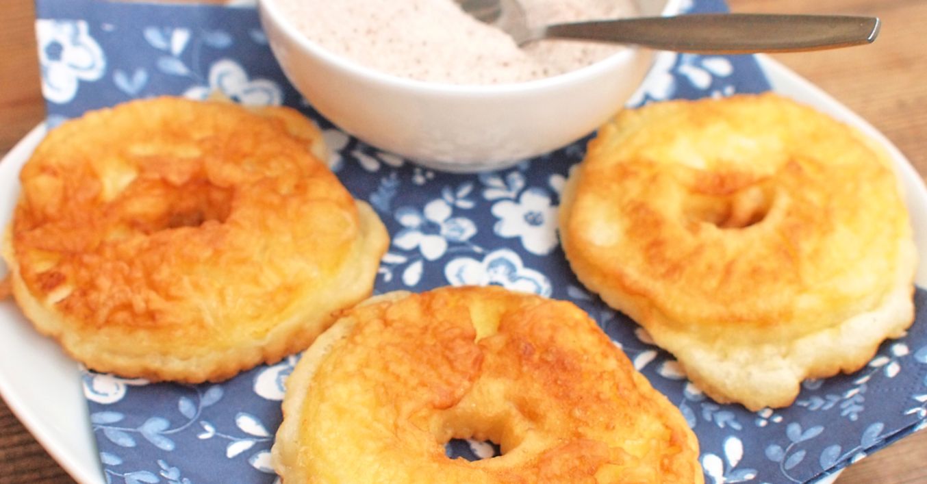 Vejce, mléko, mouku, cukr, špetku soli a prášek do pečiva ušleháme. V těstíčku pak obalíme kolečka jablek a osmažíme v rozpáleném oleji dozlatova.