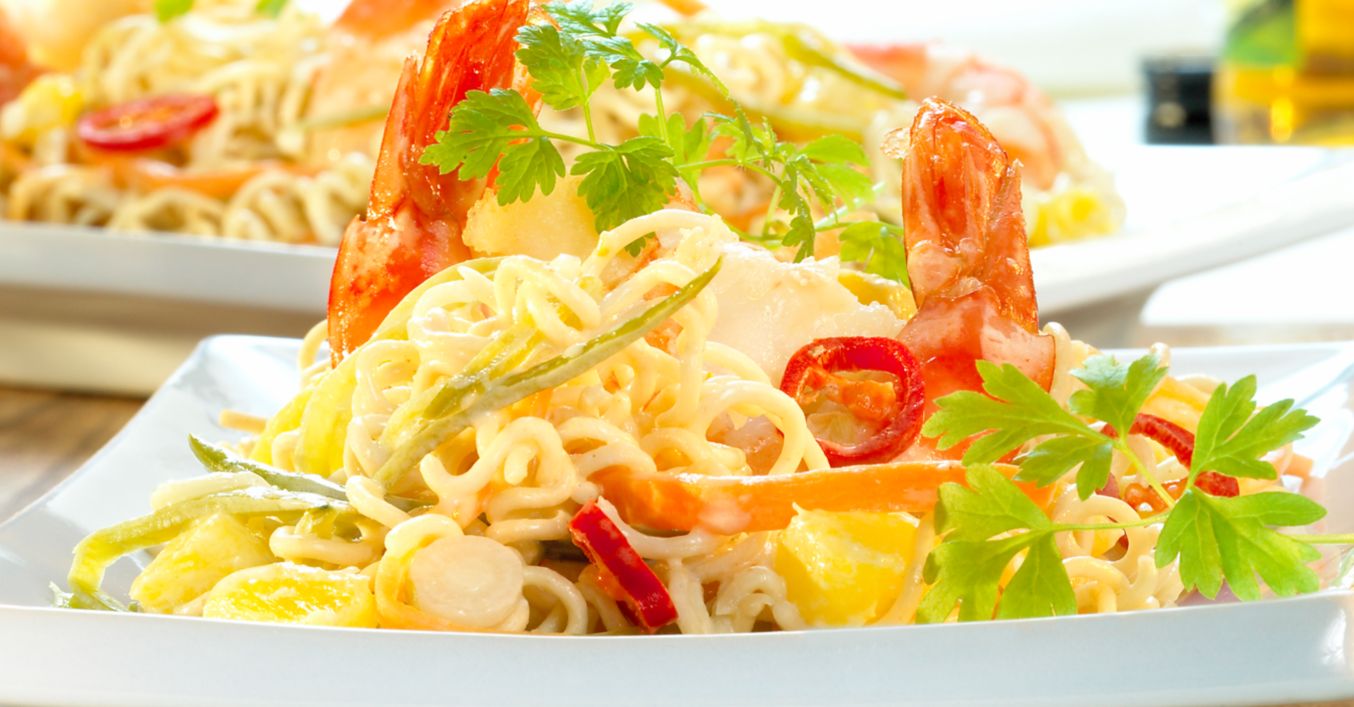 Smažené čínské nudle s krevetami