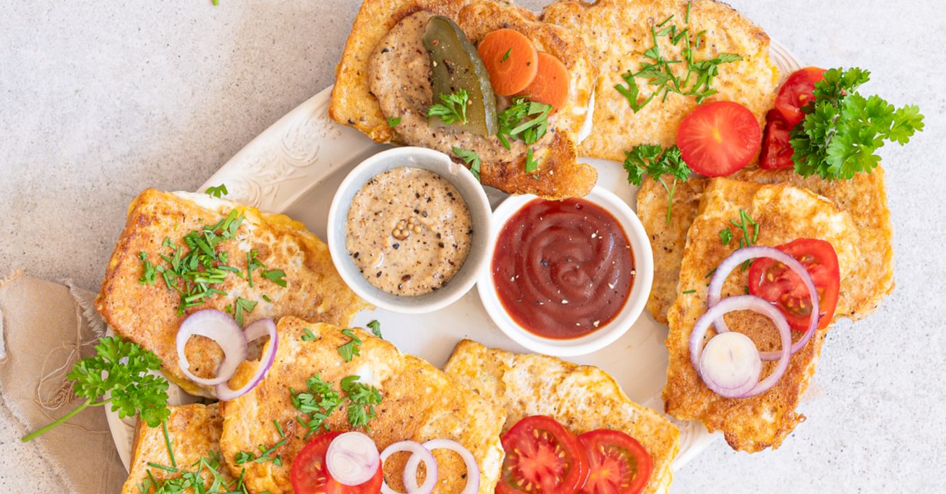 Veku ve vejcích smažte v pánvi s rozpáleným olejem z obou stran. Poté je potřete hořčicí nebo kečupem.