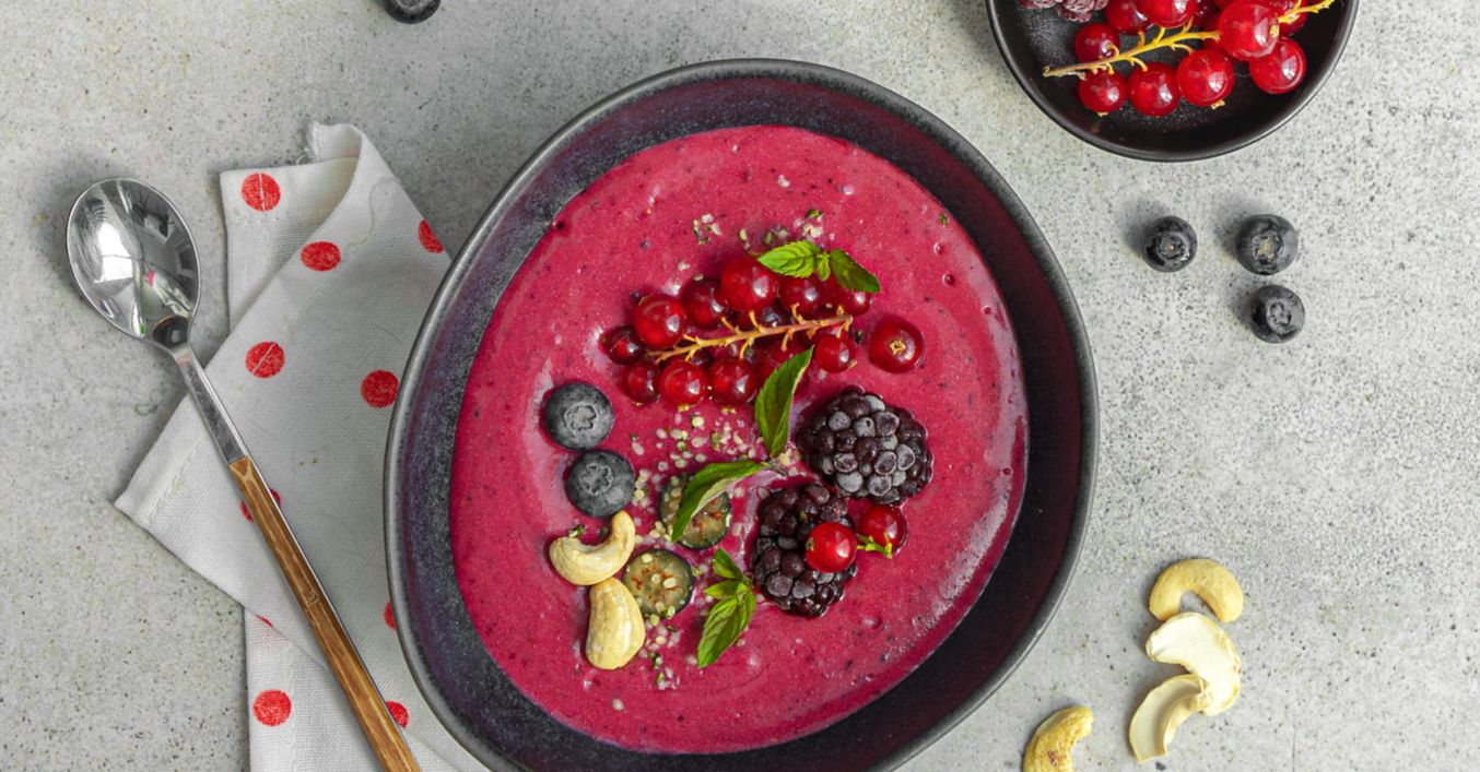 Vlijte do misek a ozdobte čerstvým ovoce, konopnými semínky, kešu ořechy a čerstvou mátou. Hned podávejte.