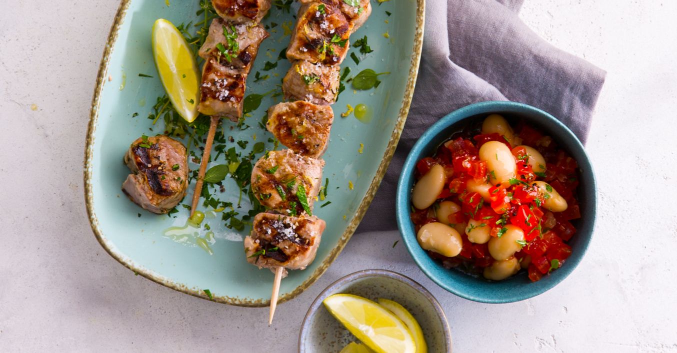 Špízy připravujeme na grilu asi 5 až 8 minut a podáváme s fazolemi.