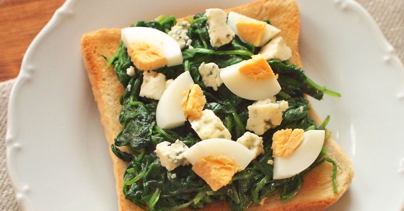 Toasty opečeme v toastovači. Přidáme špenát, rozdrobený sýr, vejce a ihned podáváme.