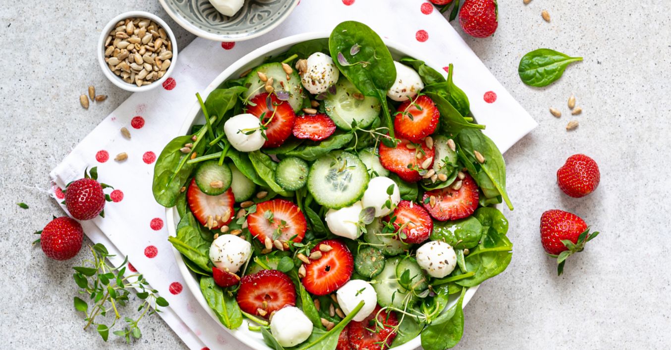 Špenátový salát s jahodami a mozzarellou