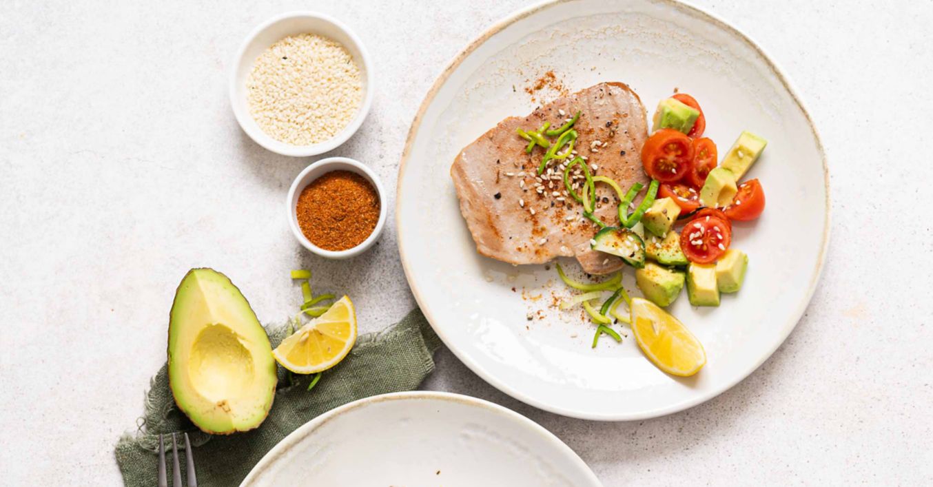 Pánev rozehřejte. Orestujte tuňákové steaky z obou stran. Pak dejte bokem a nechte chvíli odpočinout.