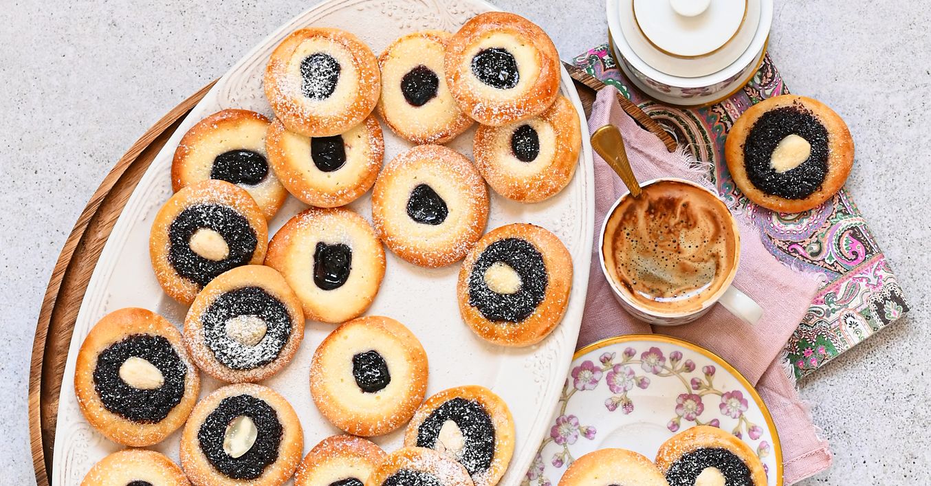 Koláčkům vytvořte pomocí důlkovače okraje. Ty potřete rozšlehaným vejcem. Do středů rozdělte makovou a tvarohovou náplň. Makové koláčky ozdobte mandlemi, tvarohovou povidly.